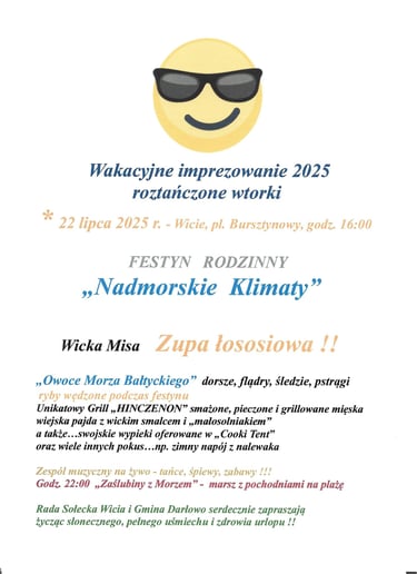 Wszystkie Festyny odbywają się na Placu Bursztynowym (przy plaży) od godz. 16.00.