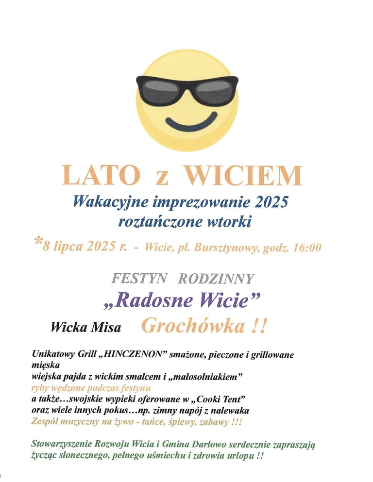 W Wiciu w sezonie 2015 zaplanowano 4 Festyny Rodzinne, które od tego roku będą odbywały się we wtorki: